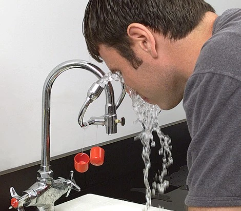 Tap and Eye Wash unit provides immediate emergency response for chemical exposure, ensuring laboratory safety through quick-access design, reliable water flow, and compliance with essential laboratory safety standards.